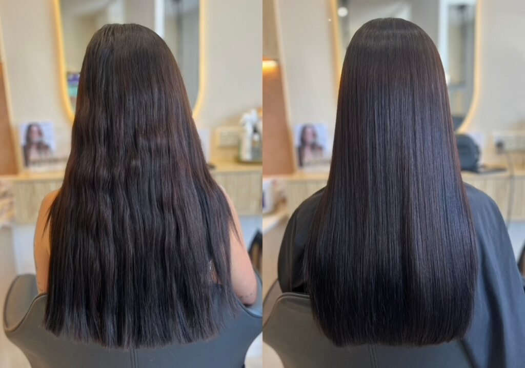 Instant Smoothness: Hair becomes sleek, shiny, and frizz-free right after treatment.